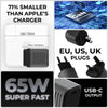 Supertiny is the smallest 65W GaN charger ever. Available with US, UK, and EU plugs, it offers safe, high-performance charging for a wide range of devices, including laptops, smartphones, and tablets.