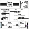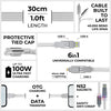 inCharge® XL 30cm is the only cable you will need for home and travel. It features 2 Inputs and 3 Outputs, for a total of 6 different connections, it allows ultra fast charging up to 100W and Apple's Fast Charging up to 27W.